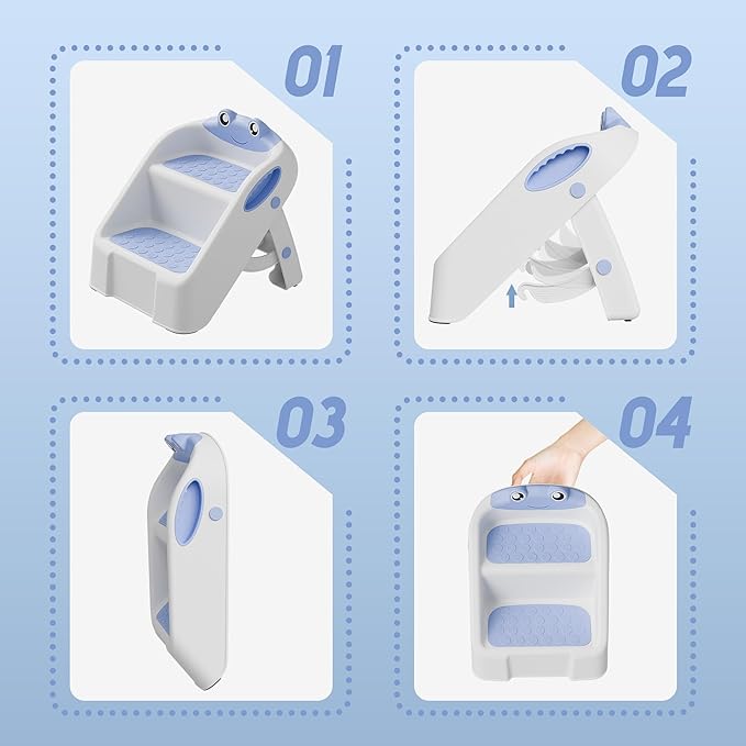 - [Easy to Fold and Carry]: Featuring a foldable design for easy storage, kids can fold the stool in the blink of an eye. Our toddler step stool is also equipped with side handles, which is perfect for active little ones to transport anywhere they need.