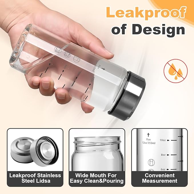 - WIDE MOUTH OPENING FOR SMOOTHIES, JUICES, PROTEIN & ICE: Introducing our premium glass juice bottles, available in 12oz, 16oz, and 20oz sizes. Crafted from high-quality borosilicate glass, each bottle is equipped with stainless steel lids for a leak-proof seal