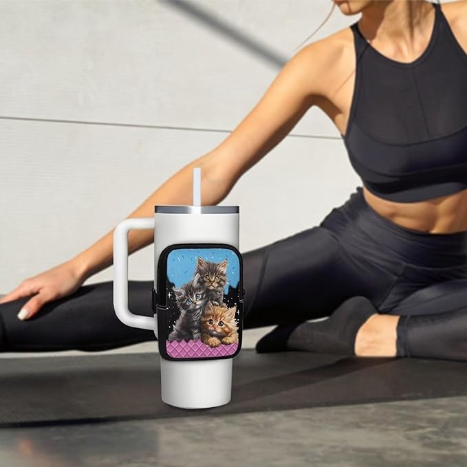 Cat Stanley Cup Pouch with Adjustable Strap Water Bottle Storage Bag 20oz-40oz IceFlow Tumbler Pouch for Stanley Accessories