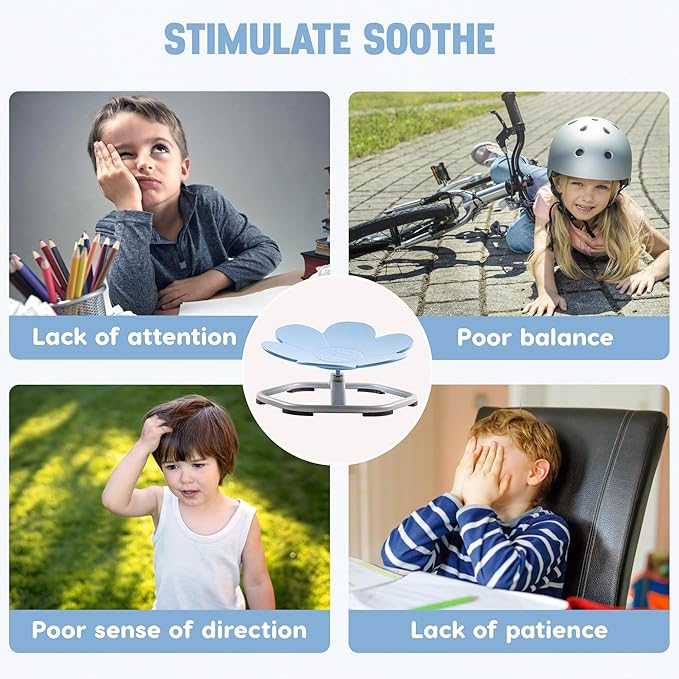ROBUD Kids Sensory Swivel Chair, Autism Kids Swivel Chair with Non-Slip Design, Training Body Coordination, Flower Shape Wobble Chair, No Assembly, Blue