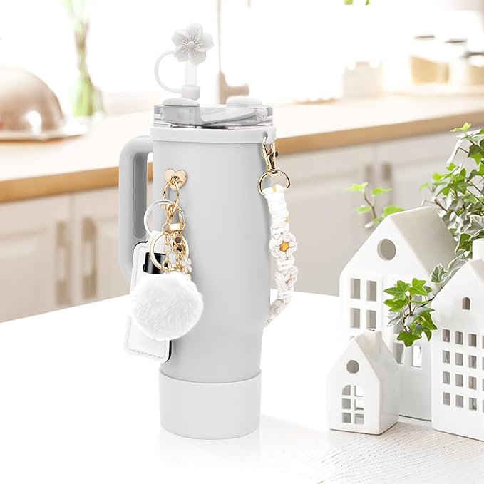 - 【Enhance Your Stanley Cup Experience】Elevate the functionality of your beloved 40oz or 30oz Stanley Cup with our accessory set. Keep your cup stylish and functional with the water bottle handle strap, silicone straw cover, boot, and charming accessories.