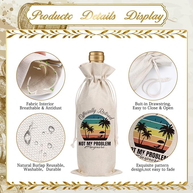 - 【Perfect Retirement Gift】This wine bag features exquisite patterns and the words "Officially Retried Not My Problem Anymore", which makes it a very meaningful gift for women starting a new life, bosses who are about to retire, best friends, colleagues, nurses, doctors, teachers and others.