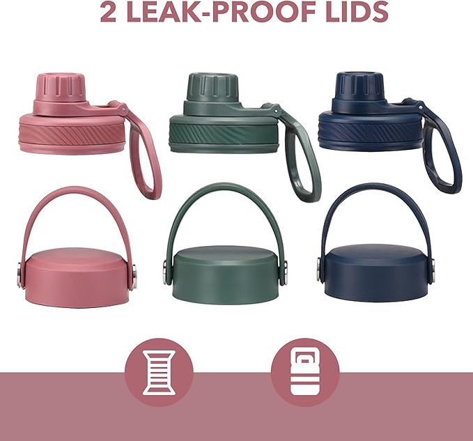 - 【One Bottle with 2 LIDS】: Aiivow stainless water bottle comes with 1 easy-twist spout lid and 1 portable handle lid. Provide you with maximum convenience on the occasion you need. *NOTE: The stainless steel lid without straw*.