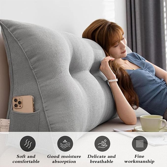 Wedge Pillow Headboard Queen, Triangle Pillow Wedge for Headboard, King Size Bed Wedge Pillow for Headboard Gap Filler, Sleeping Wedge Pillow for Adults, Grey
