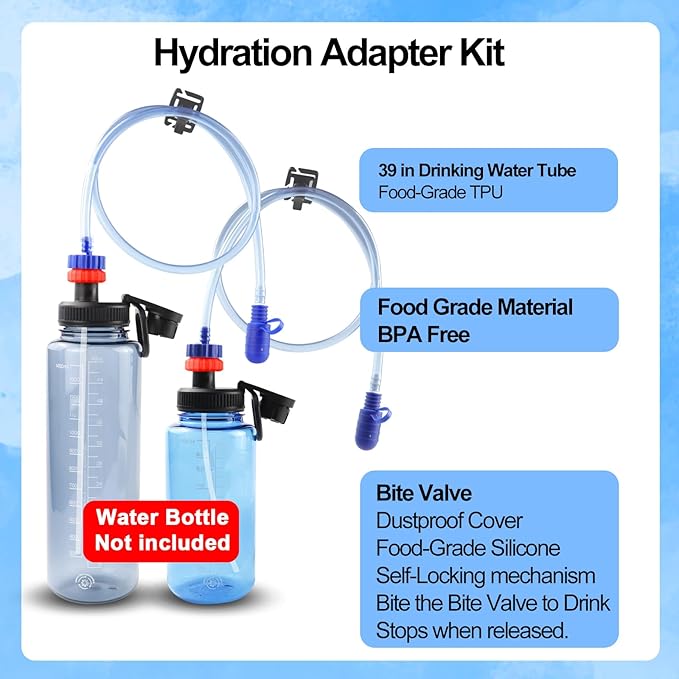 - Hydration Adapter Kit for Nalgene water bottles 32 oz wide mouth 32 oz water bottles plastic water bottles lid 48 oz water bottle clear water bottle hiking water bottle straw lid accessories water bottle adapter water bottle hydration tube