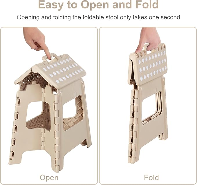 - Portable Folding Stool: Our step stools for adults come with an ergonomic handle for effortless folding and transport. Lightweight and convenient, it's perfect for both indoor and outdoor activities. Easily store or hang the portable step stool in any corner to save space when not in use.