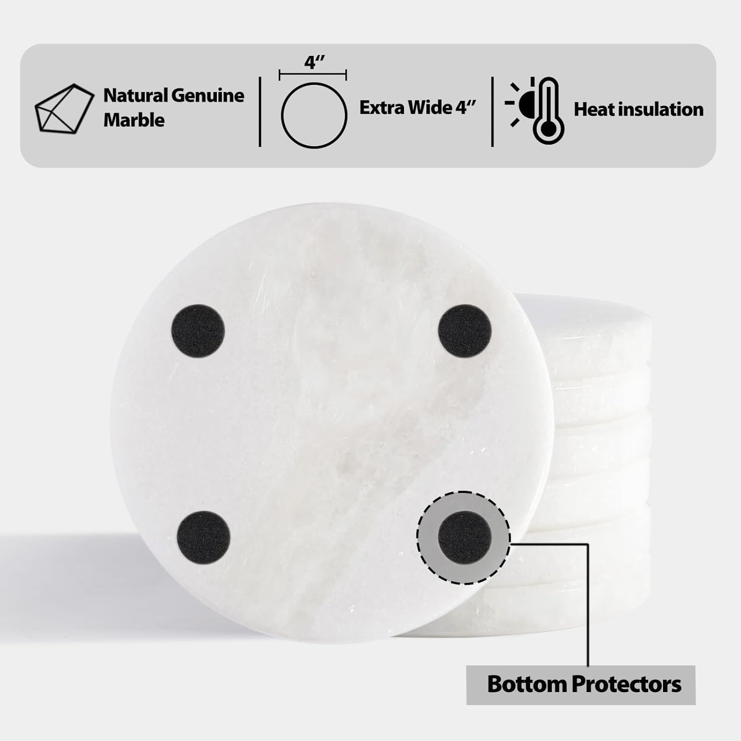 - Protect Tabletop ---- Each marble coaster has bottom protectors that can provide tabletop protection of your table or desk, such if soiled and scratched, just enjoy your drinks without worrying too much