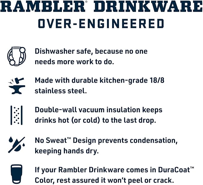 - Complete with all the features you expect from a Rambler: 18/8 stainless steel, double-wall vacuum insulation, and a No Sweat Design