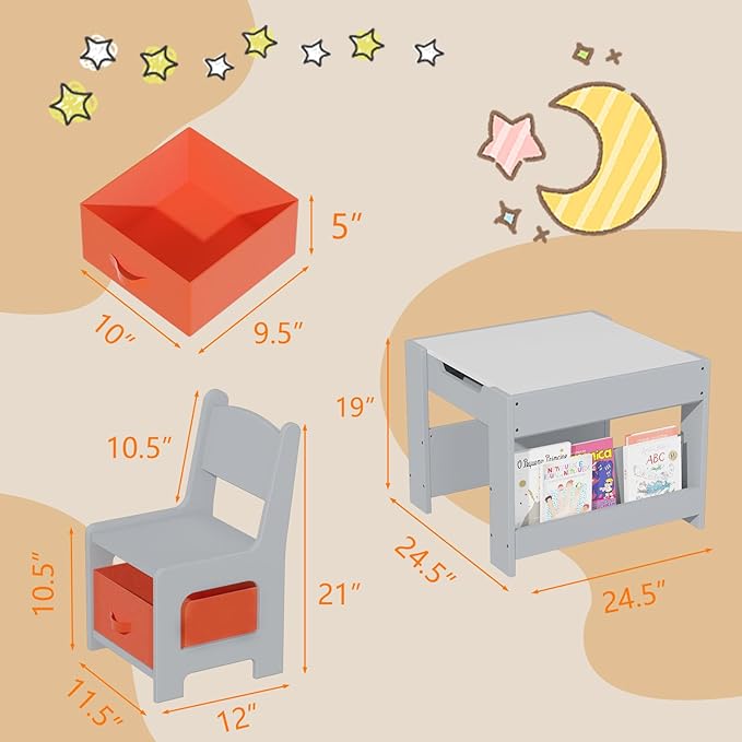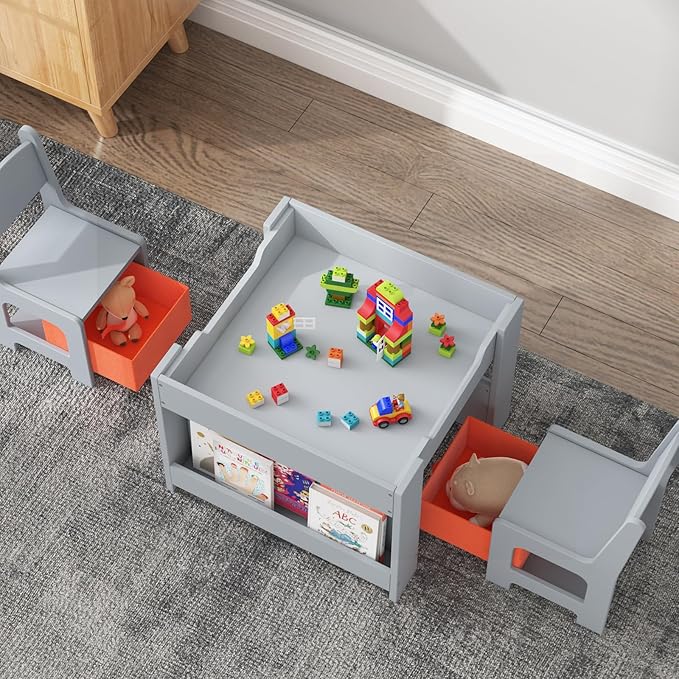 - 【Practical Toy Storage】The bottom of the chairs have removable collapsible fabric drawer that encourage good organizing habits.The under-seat compartment maximizes space utilization and provides ample storage for toys, snacks, books, and more, fostering a tidy play area.