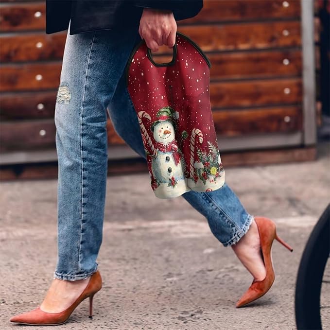 doginthehole Christmas Snowman Wine Carrier Tote Neoprene Wine Bottle Protective Travel Bag Wine Tote Carrier Champagne/Beer Bags for Birthday, Wedding, Picnic Party