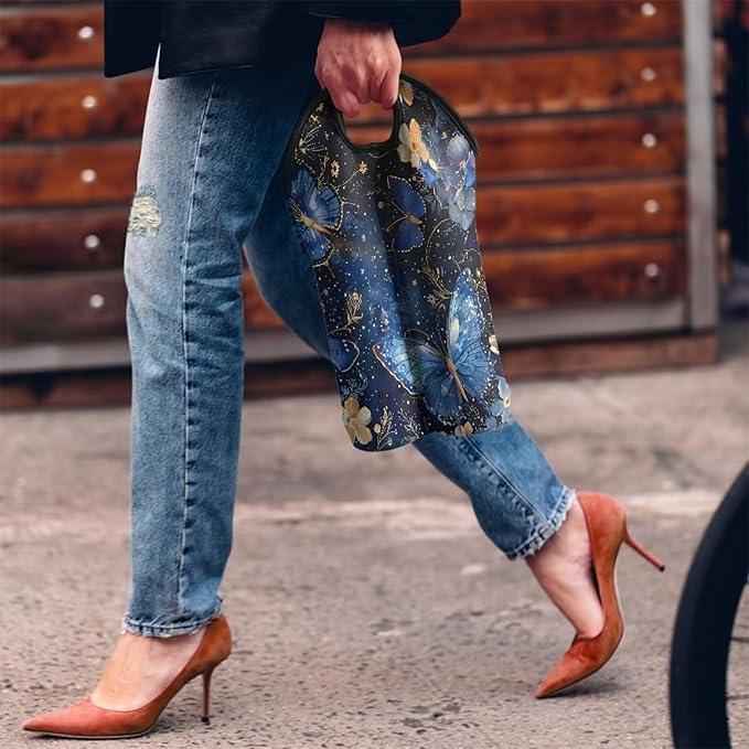 doginthehole Neoprene Wine Tote 2 Bottle Aesthetic Blue Butterfly Floral Wine Carrier Bag with Carry Handle for Travel, Portable Wine/Champagne/Beer/Water Bottle Carrier Bag