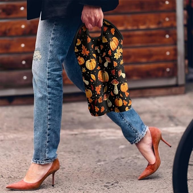doginthehole 2 Bottle Wine Bag Tote Bag, Fall Maple Leaf Pumpkin Mushroom Neoprene Wine Carrier Tote Bag, Wine Bag for Wine Bottle, Beer Bottle and Water Bottle, Thanksgiving Day Decorations