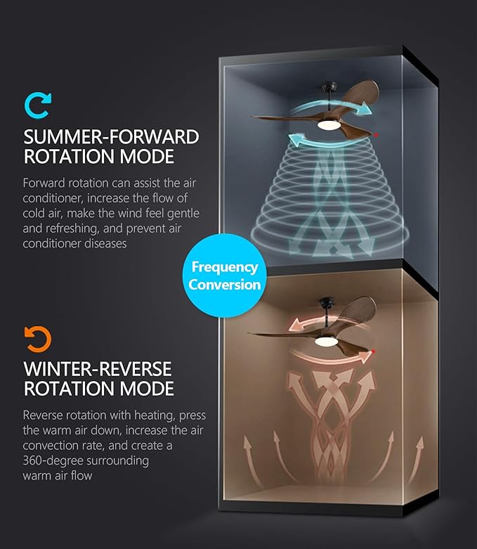 - 6 Wind Speeds and Timer:ceiling fans awesome copper motor has 1-6 speed settings so you can enjoy both superior airflow and quiet performance.ceiling fans remote control has 1H/4H/8H timer settings and forward and reverse functions, you can easily control this fan from anywhere in the room without any interference