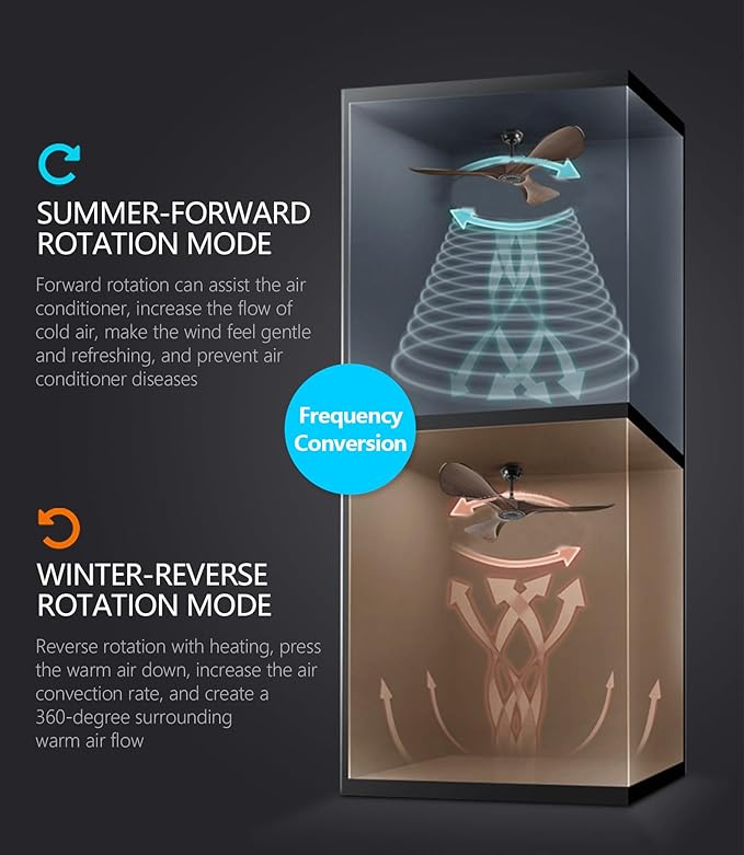 - 6 Wind Speeds and Timer:ceiling fans awesome copper motor has 1-6 speed settings so you can enjoy both superior airflow and quiet performance.ceiling fans remote control has 1H/4H/8H timer settings and forward and reverse functions, you can easily control this fan from anywhere in the room without any interference