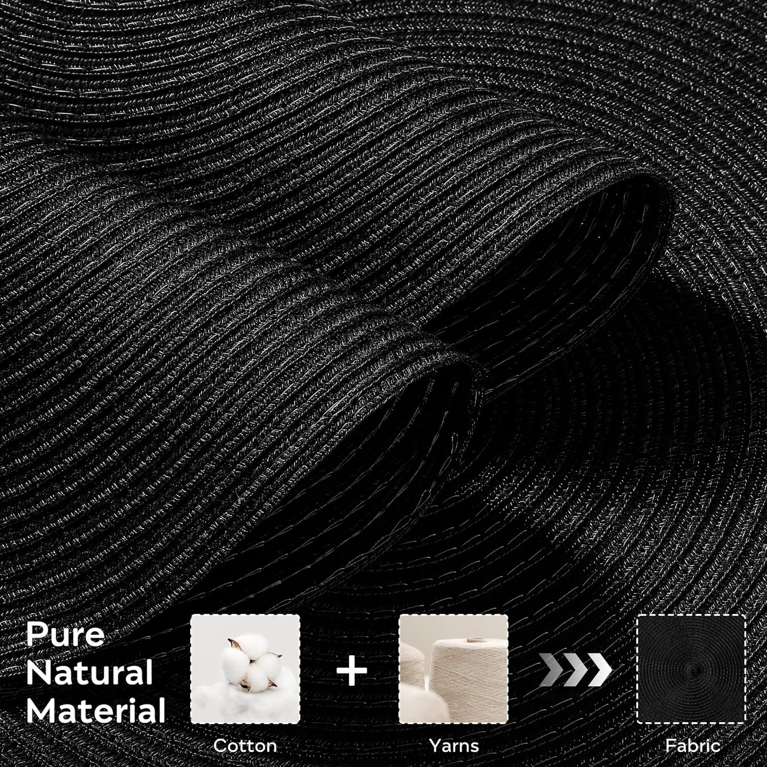 Leetaltree Round Placemats Heat and Slip Resistant Cotton Table Mats, Washable Bohemian Placemats for Dining Tables (Black, Set of 4)