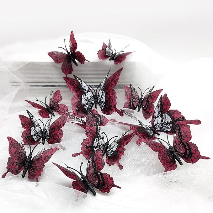 - Halloween Butterfly Wall Stickers: You will get 12 Pcs butterfly skull wall stickers with 12 double-sided tape sticker. 3D wall stickers will help you create the creepy yet subtle halloween look you want. Definitely add a punch to the halloween decor