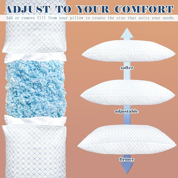- Fluffy and Adjustable Height: The mislili gel pillow can be freely adjusted by itself, providing personalized support for your head, neck and shoulders, relieving pain and improving your sleep. There is a zipper on one side of the bed pillow. You can open it and insert or remove the filling through it