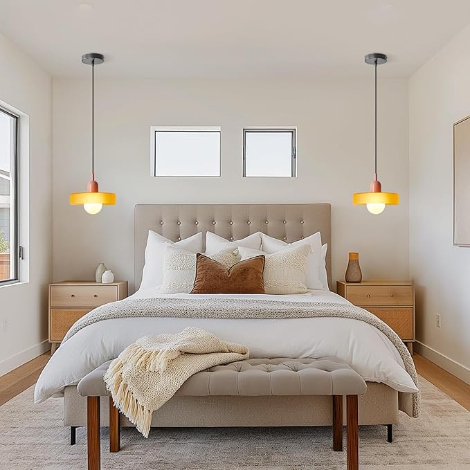 - 💡【Mid-Century Modern Style】:The vintage pendant light made from metal and glass. Chic contrast color design make the pendant light simple and retro.A perfect blend of mid-century and modernity.