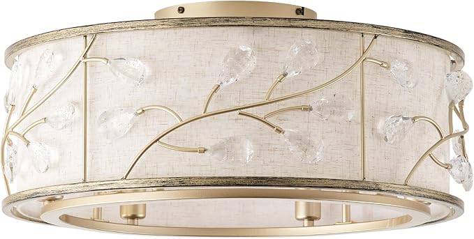20 Inch Gold Crystal Ceiling Fan with Light, Caged Crystal Ceiling Fan with Light Remote Control, Flush Mount with 6 Speeds for Bedroom, Nursery, Living Room (6 E12 Bulb Includ) (Gold)