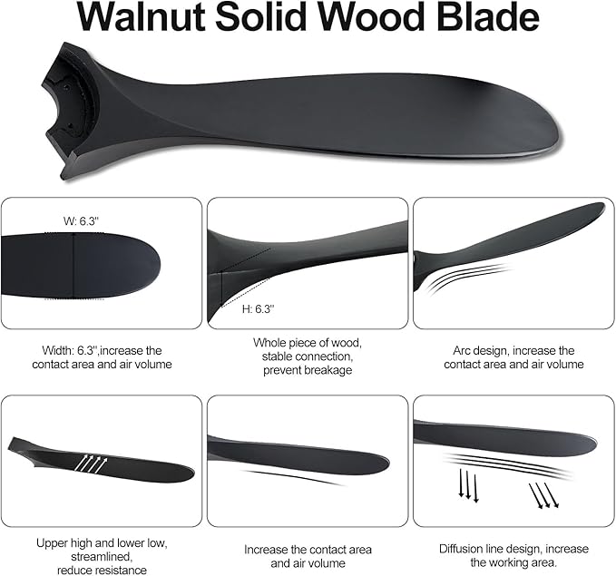 60" Ceiling Fans with Lights, 60 inch Ceiling Fan with Lights, High cfm Quiet 3 Blade Wood Walnut Ceiling Fan, Large Modern Ceiling Fan with Remote, Propeller Fans for Patios,Matte Black