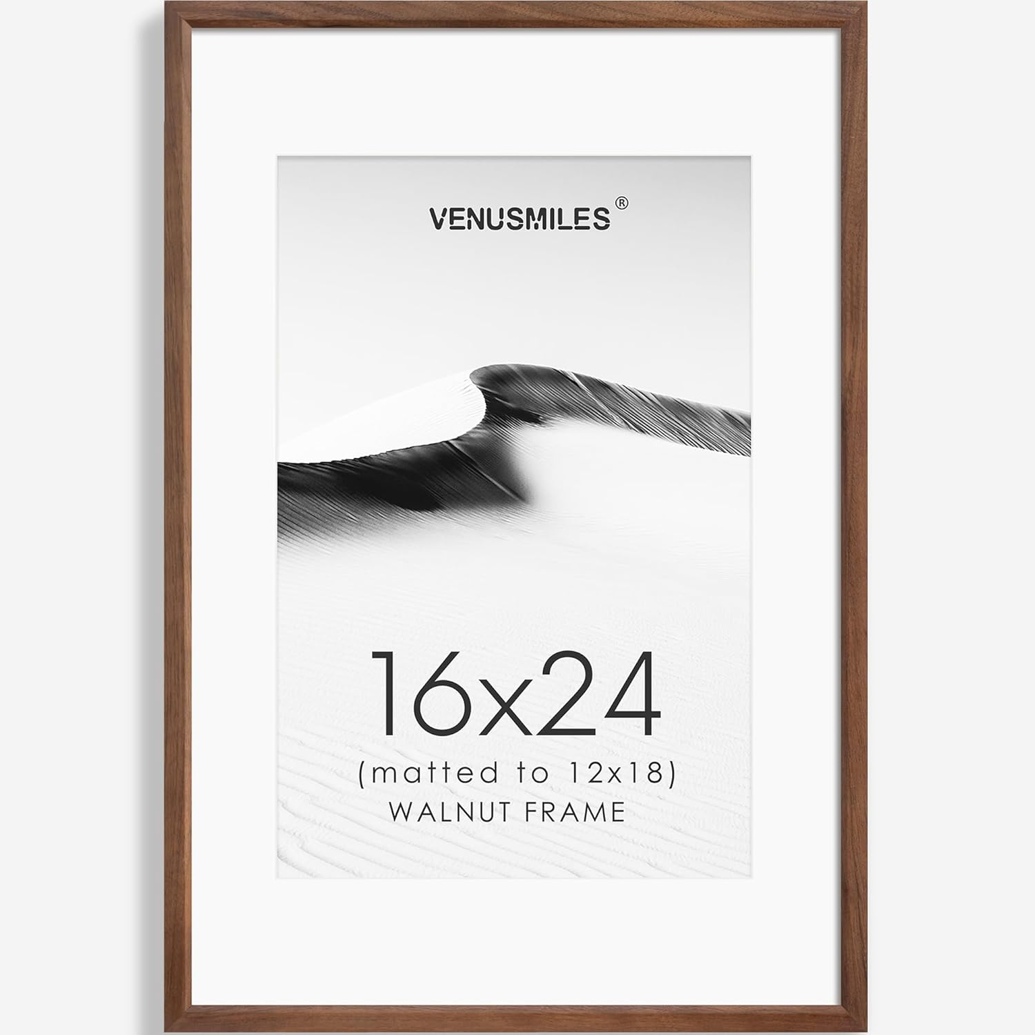 16x24 Poster Frame Natural Solid Walnut Photo Frames with 12x18 Removable Mat Wall Hanging Large Handcrafted Frame with HD Plexiglass Wall and Tabletop Display Large Picture Frame