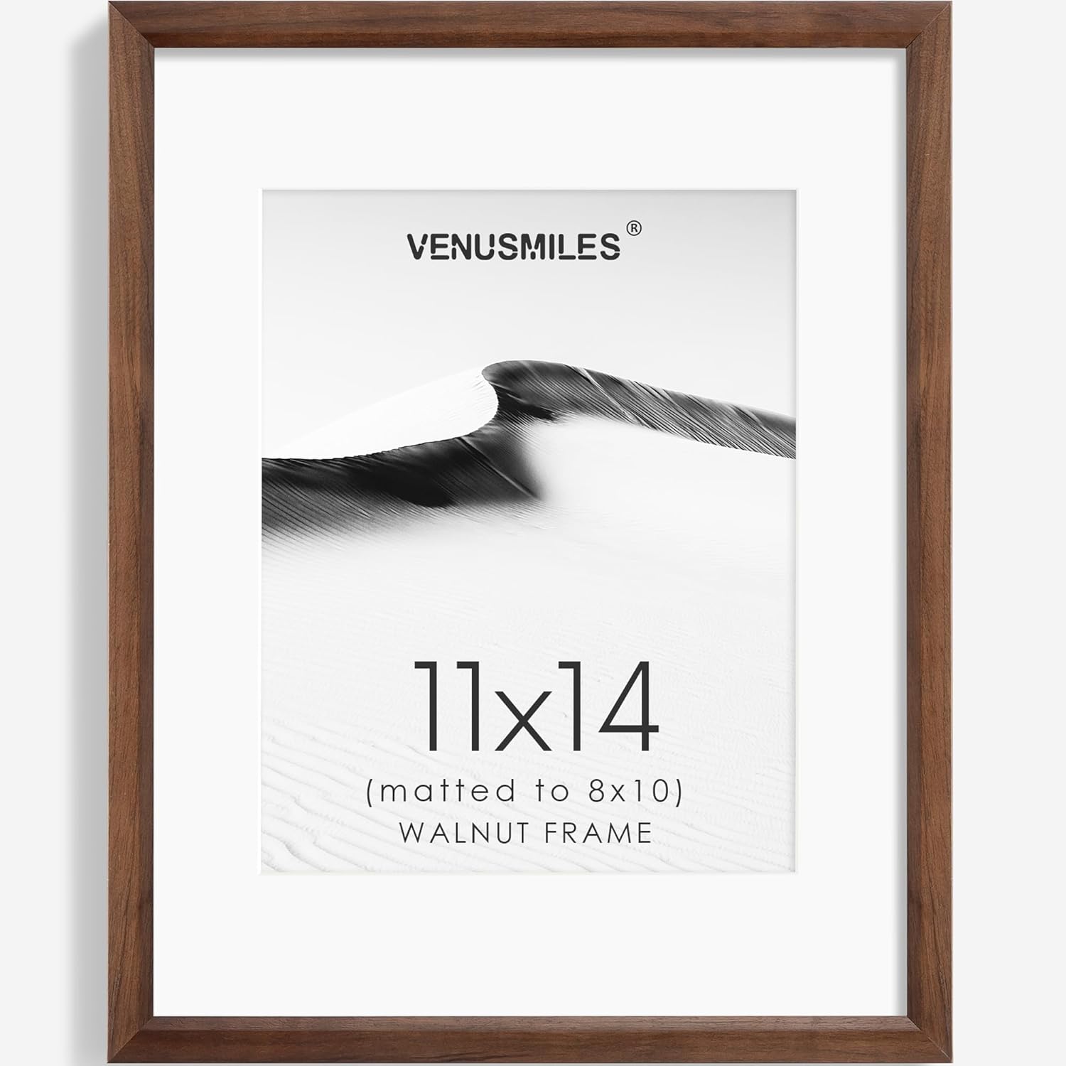 11x14 Picture Frame Natural Solid Walnut Photo Frames with 8x10 Removable Mat Wall Hanging Large Handcrafted Frame with HD Plexiglass Wall and Tabletop Display Large Poster Frame