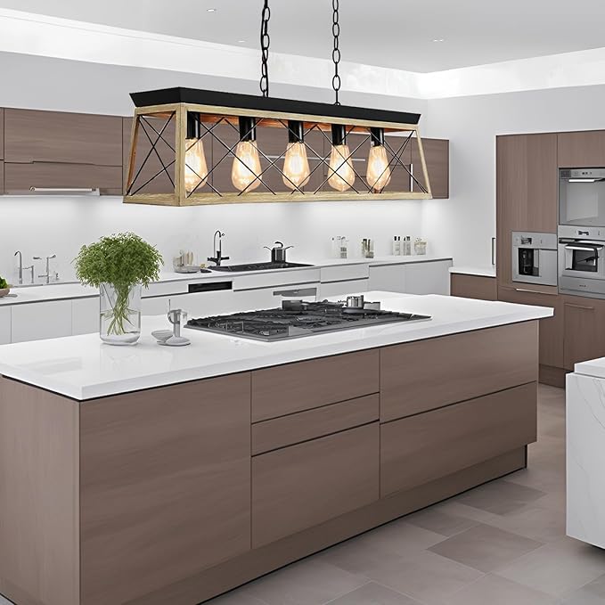 - Bulb Compatibility: The farmhouse pendant lights accommodates a variety of bulb types, including LED, CFL, incandescent, and halogen bulbs, all with a standard E26 base (MAX 60W). It also works with dimmable bulbs and dimmer switch, allowing users to create different lighting moods (bulbs and dimmers are not included). This feature adds a level of customization, making the kitchen ceiling lighting adaptable to different settings and moods within a space