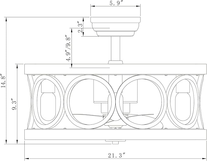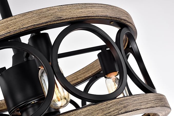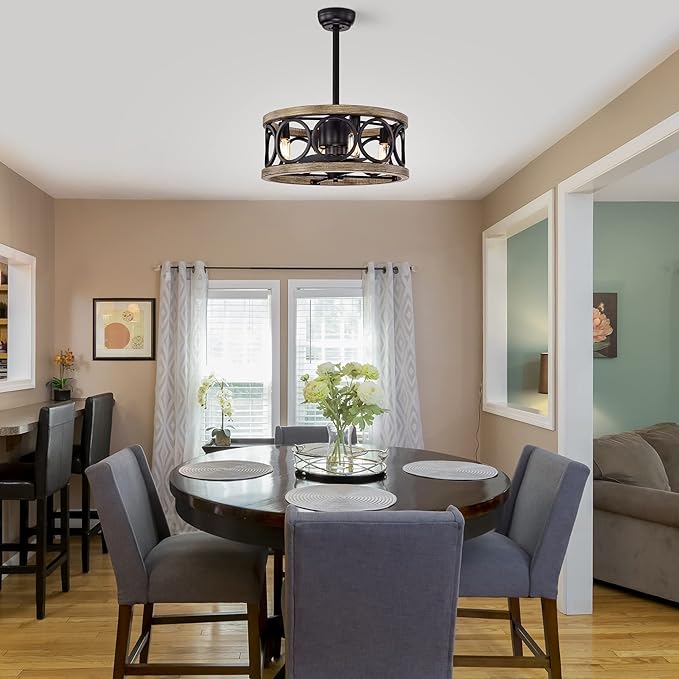 Catrin Wood Grain Ceiling Fan 21-Inch 4-Light Open Metal Drum Shade (Includes Remote)