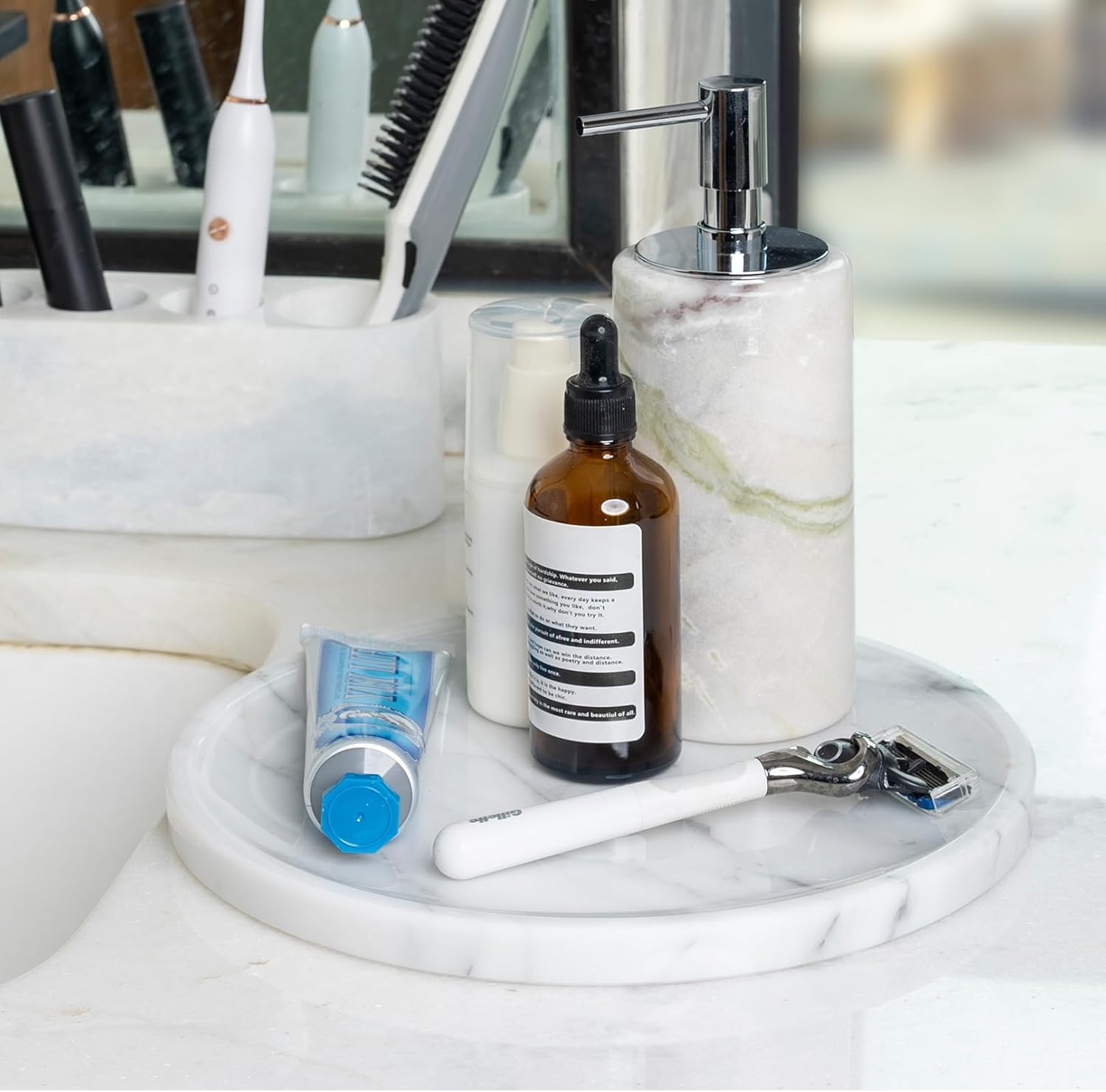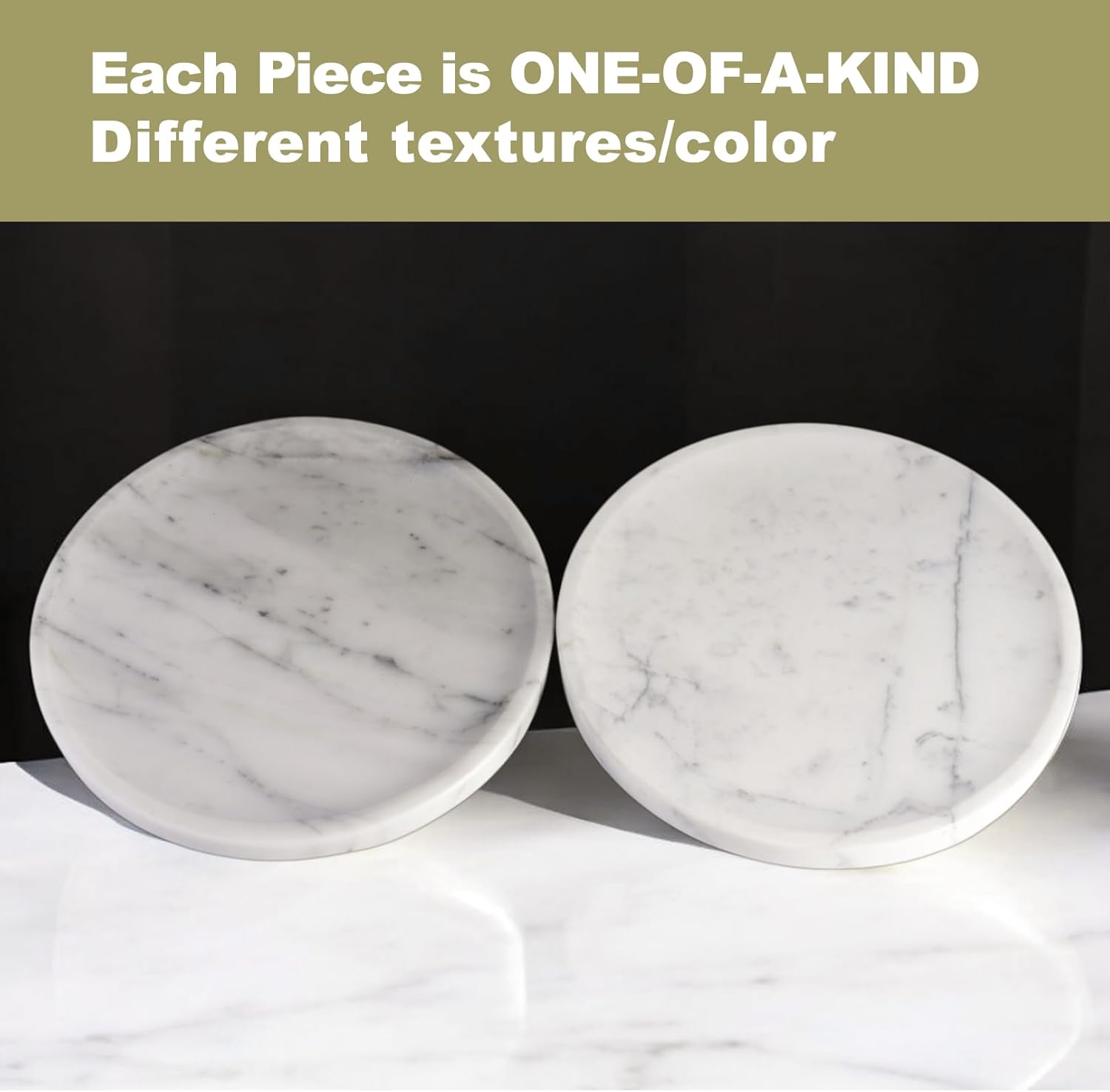 - Suitable Size: Our small round marble tray measures D9.8âx H0.7â. This bathroom counter tray fits bathroom washstands, kitchen counters, coffee tables, bedroom dressers, vanity tops, and bedside tablesâideal for organizing and enhancing your space