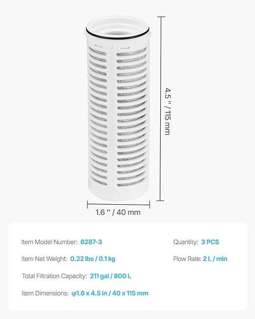 VEVOR Pitcher Water Filter Replacements, 3-Pack Water Filters for Pitchers and Dispensers, No BPA, Last 3 Months or 211 Gallons, Reduce Chlorine, Rust, Odors, PFOA/PFOS, for Water Filter Pitcher 6287