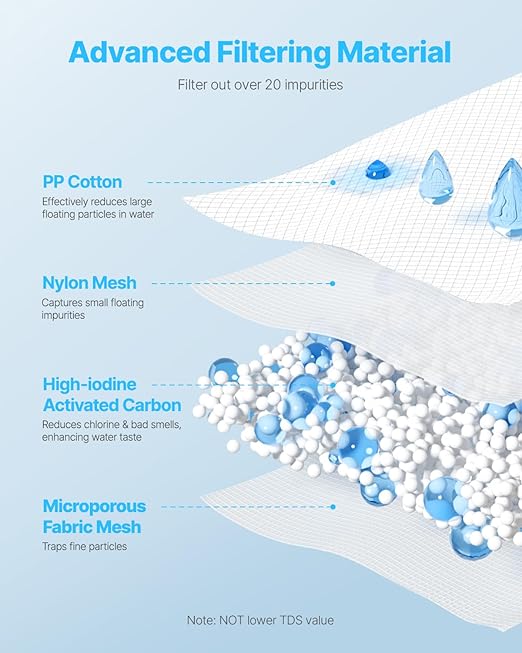 - Multi-stage Filtration: Our replacement filters for water filter pitchers effectively reduce impurities, heavy metals, limescale, chlorine, and odors while retaining essential minerals like calcium and magnesium for better-tasting water