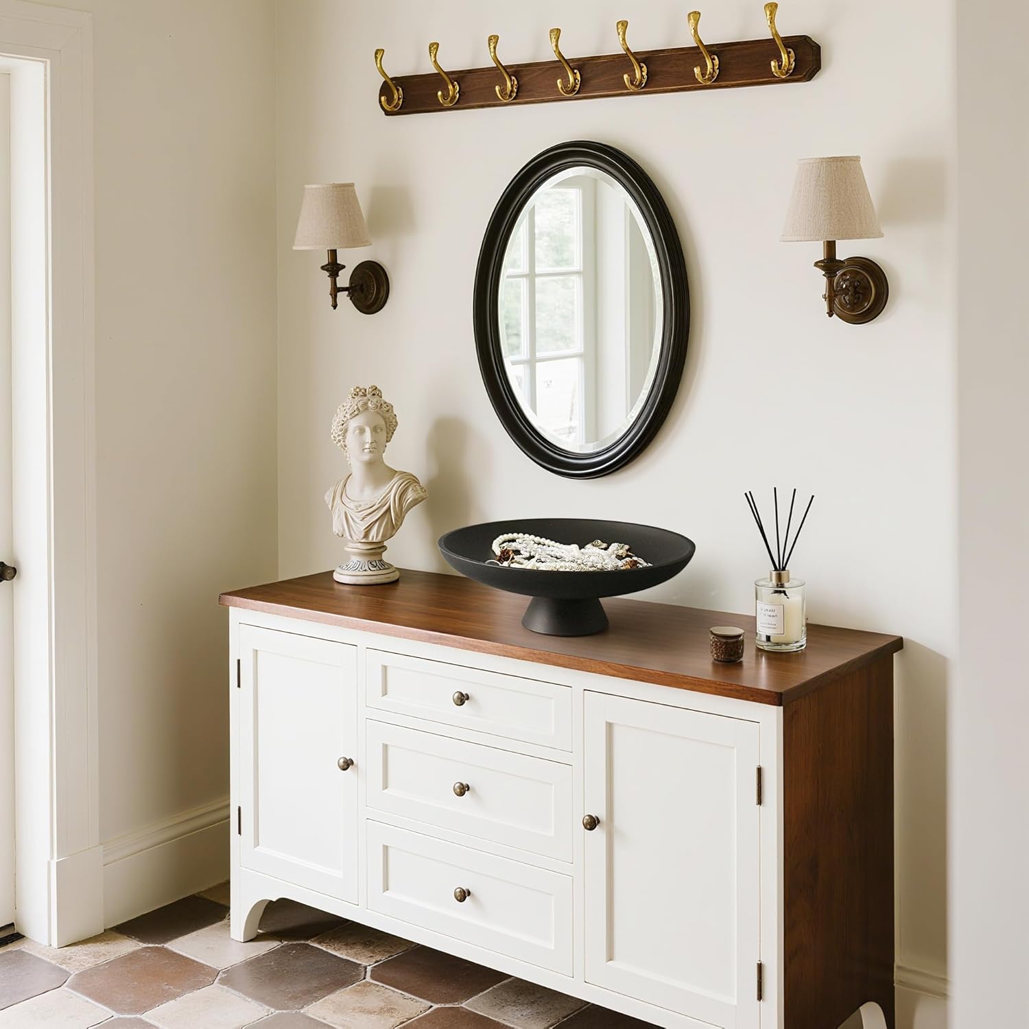 Modern Resin Pedestal Decorative Bowl, Large Fruit Bowl for Kitchen Counter, Stylish Key Bowl for Entryway Table, Matte Black