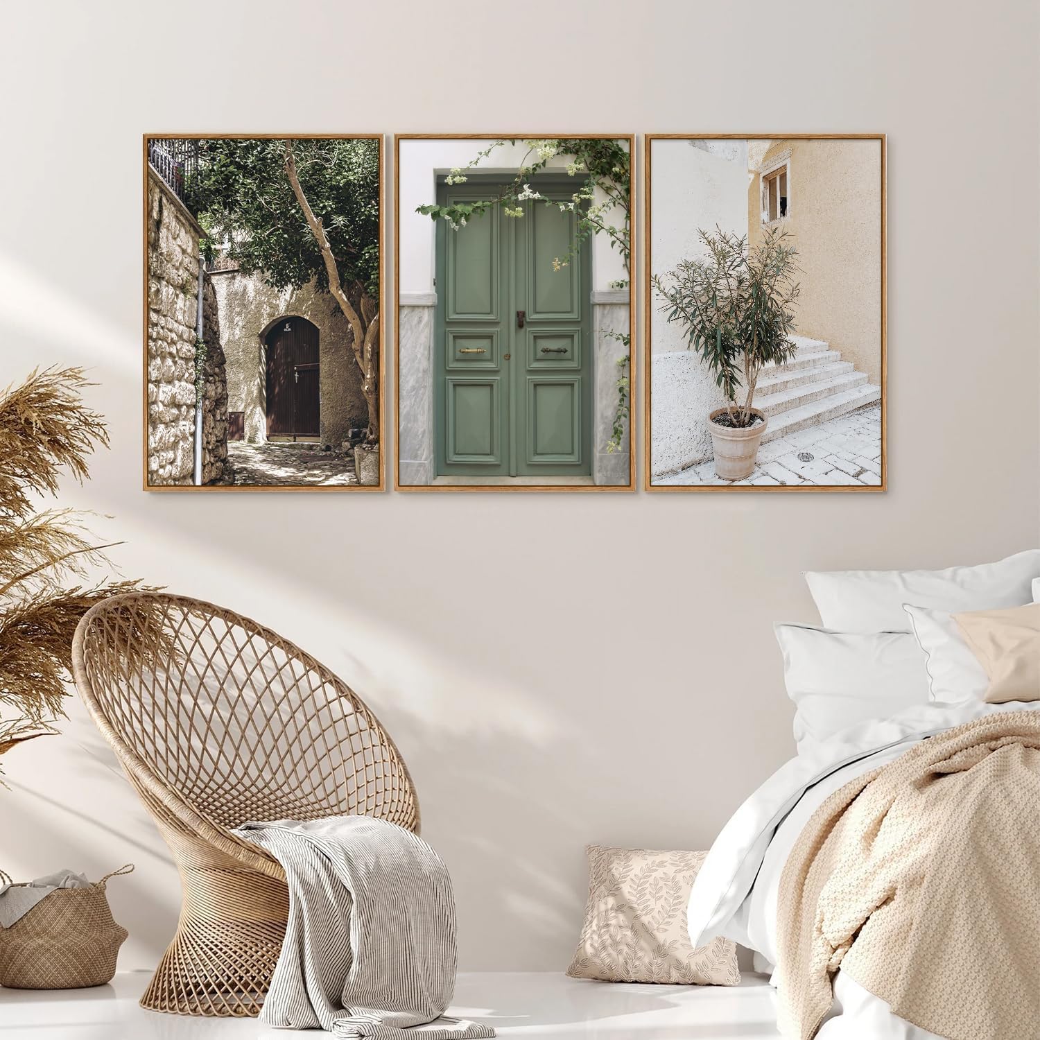 SIGNINART Large Vintage Italy City Landscape Framed Canvas Wall Art Set, Olive Green Tree Country Wall Decor, Modern Minimalist French Farmhouse Art Print for Living Room,Bedroom,Office 16 x24 x3