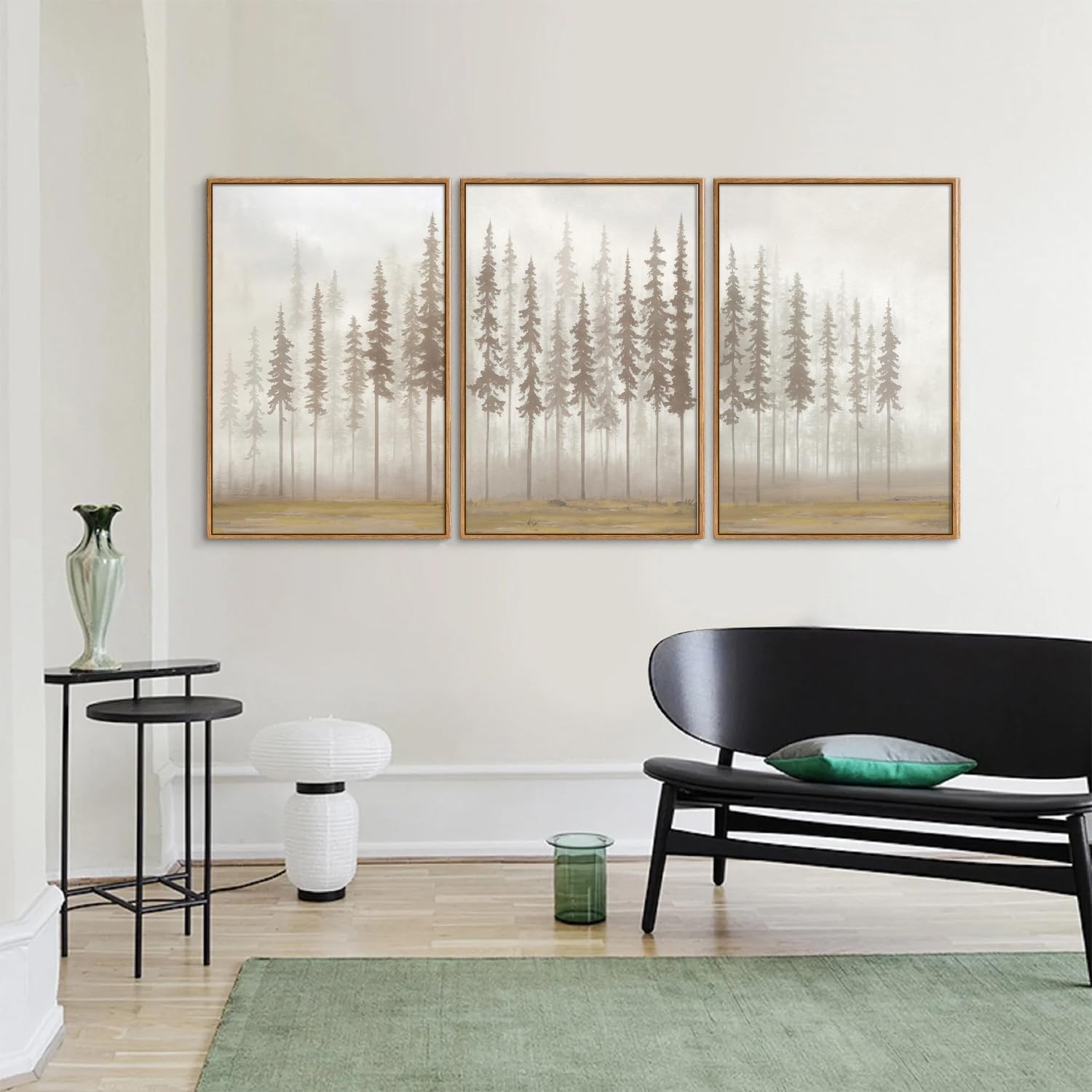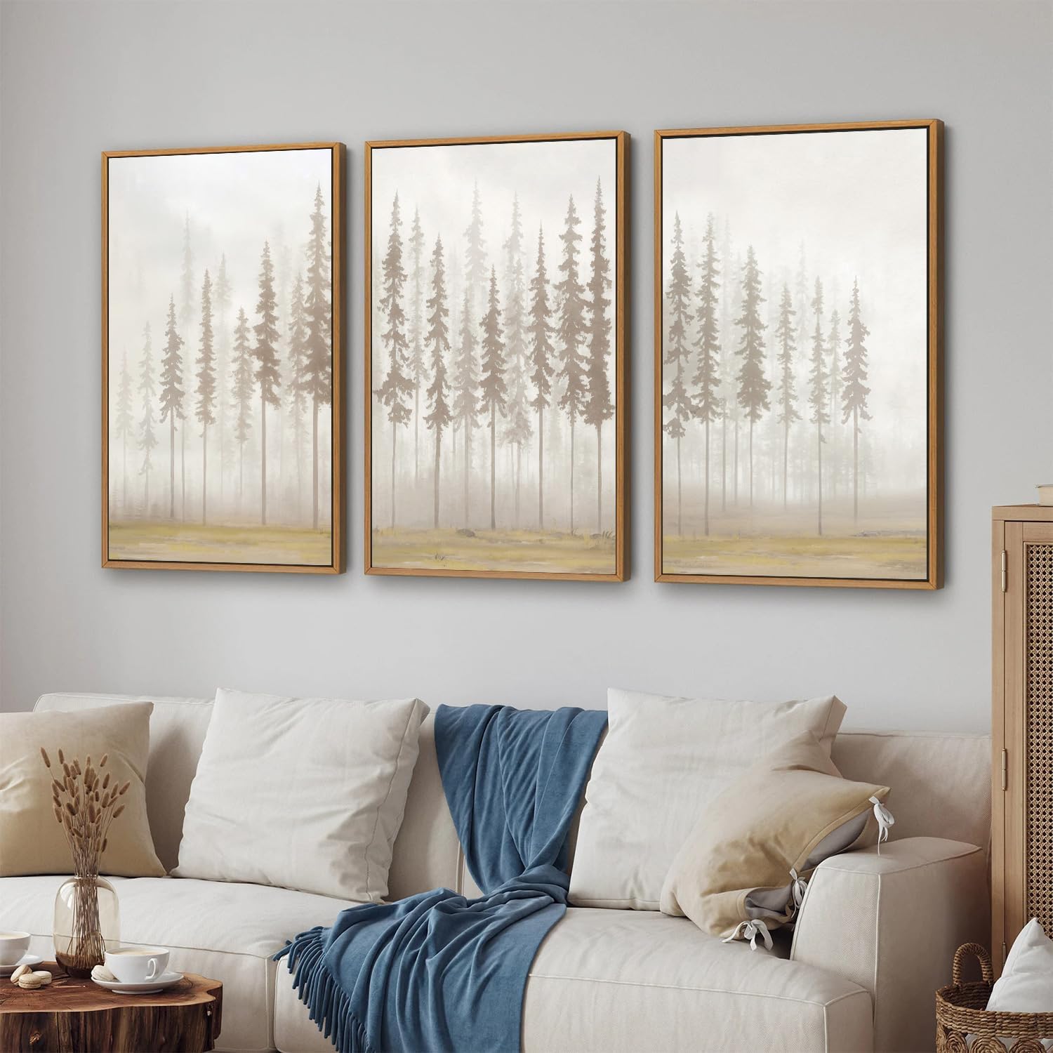 SIGNINART Large Pine Tree Framed Canvas Wall Art Set, Foggy Forest Landscape Wall Decor, Modern Beige Nature Artwork, Misty Forest Wall Painting for Living Room, Bedroom,Office 16 x24 x3