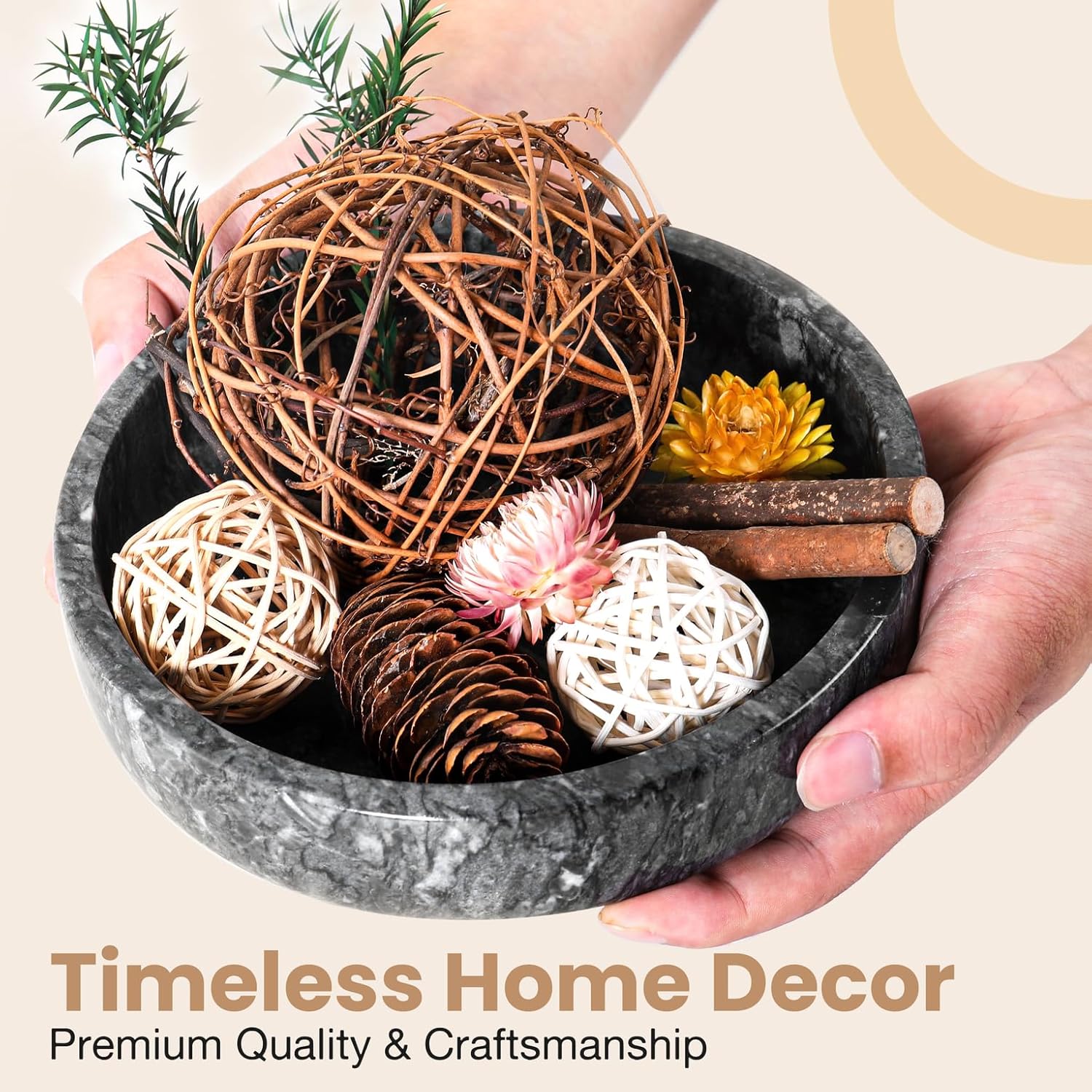 - MULTIPURPOSE BOWL β Our marble bowl is highly versatile. Use it to hold fruits, keys, or as a stylish catch-all. Perfect for any countertop, shelf, or table as modern kitchen or living room decor.