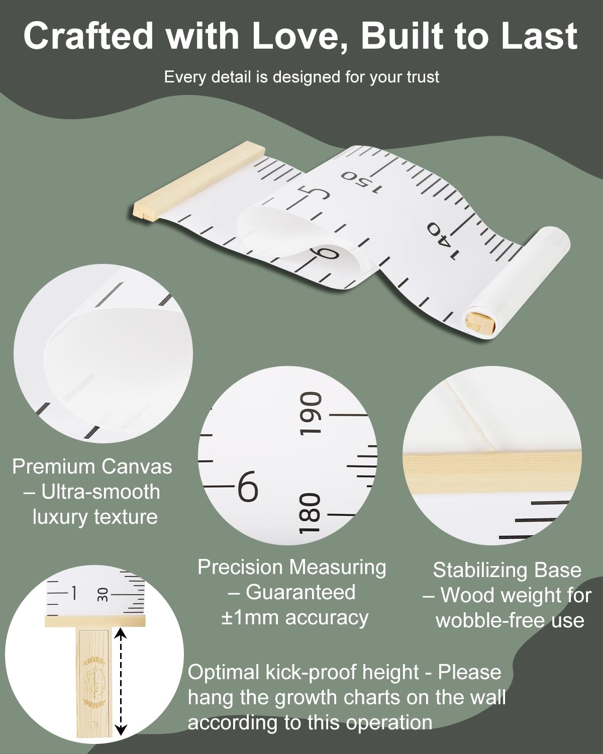- â¨Easy-to-Use & Durable Marker â Easily record your child's height measurements using the included marker on our portable growth chart, creating lasting milestones from toddler to teen years. A baby essential that turns every kid's height tracker moment into a celebration!