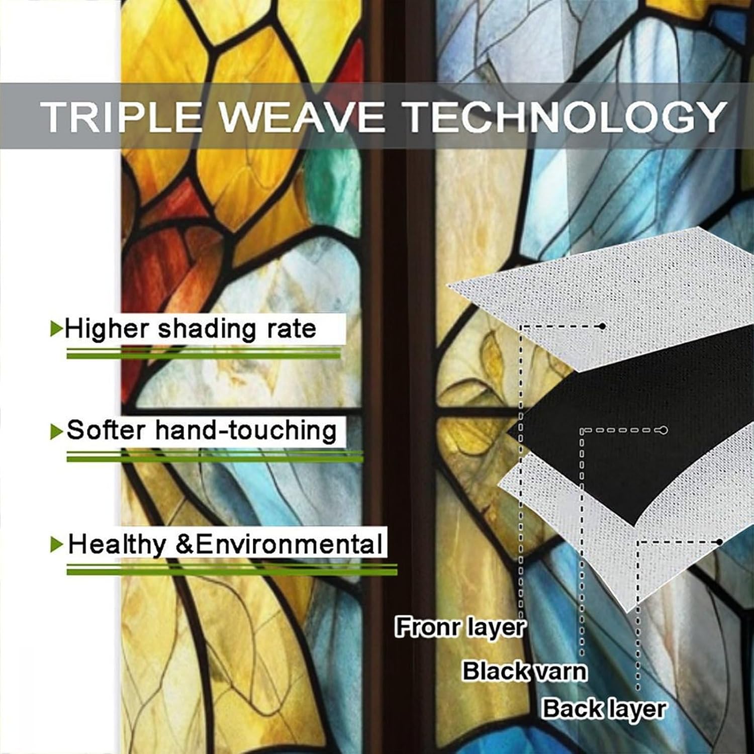 Stained Glass Curtains,Retro Abstract Colorful Art Home Decor Drapes for Bedroom Living Room Kitchen Window Treatment 2 Panels Set Total Size 63" W X 63" L Inch