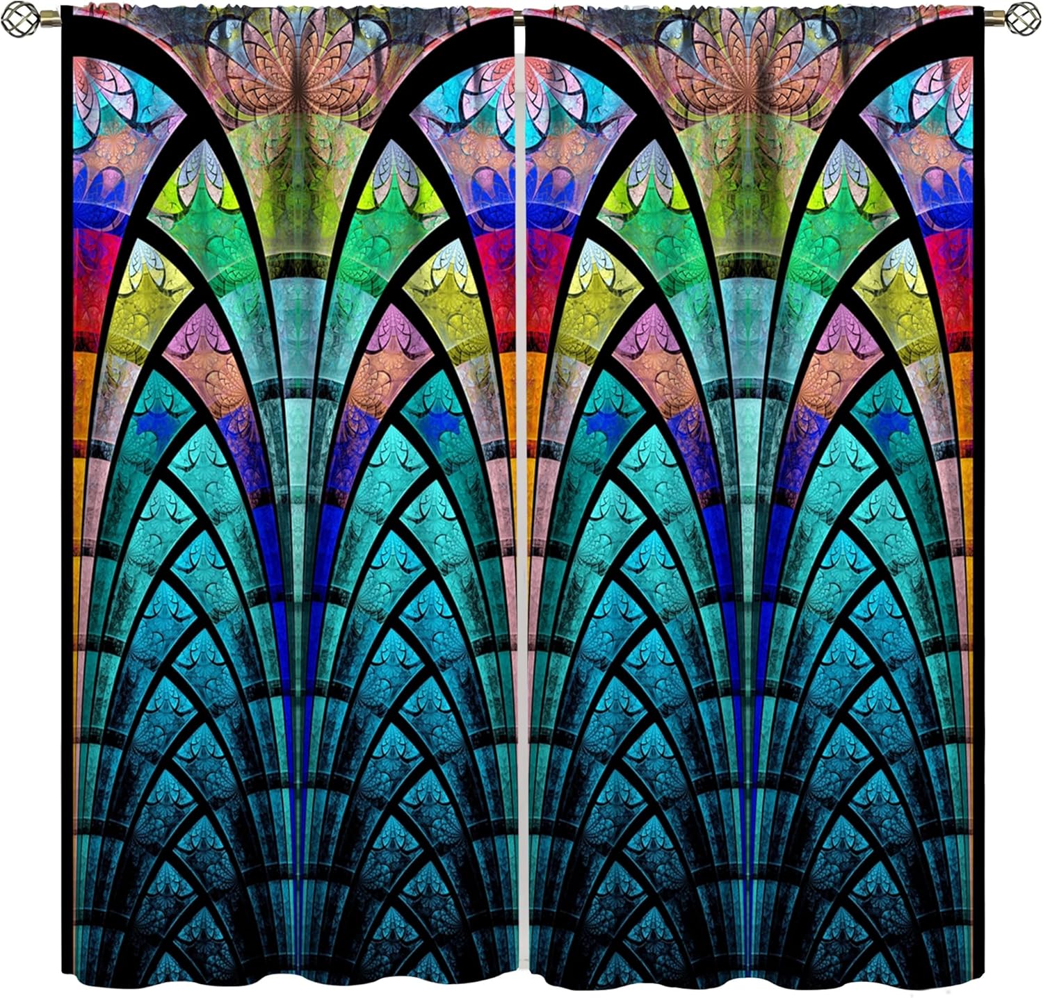 Stained Glass Curtains,Retro Design Style Colorful Abstract Art Home Decor Drapes for Bedroom Living Room Kitchen Window Treatment 2 Panels Set Total Size 42" W X 63" L Inch