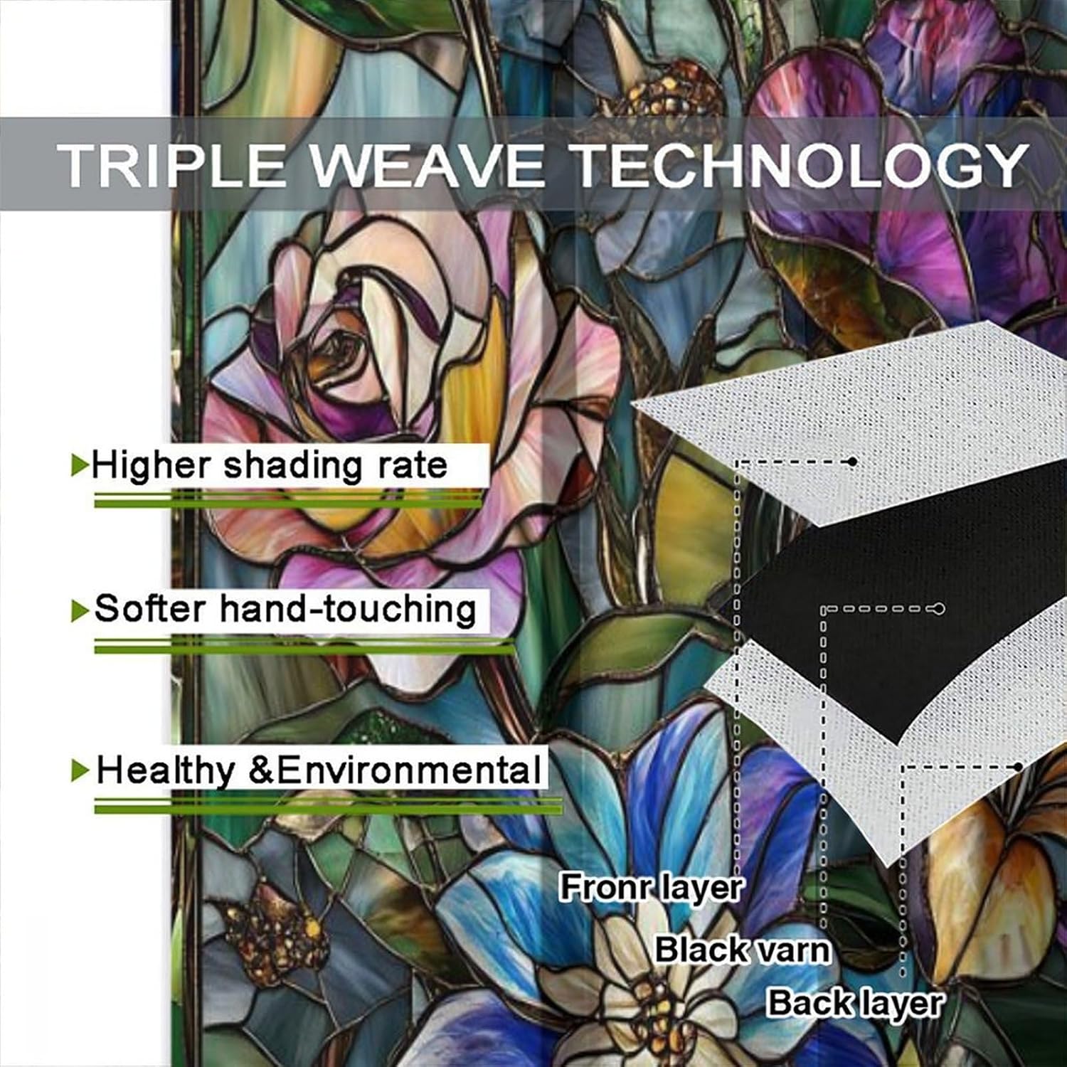 Stained Glass Curtains,Retro Colored Glass Flowers Art Home Decor Drapes for Bedroom Living Room Kitchen Window Treatment 2 Panels Set Total Size 72" W X 63" L Inch