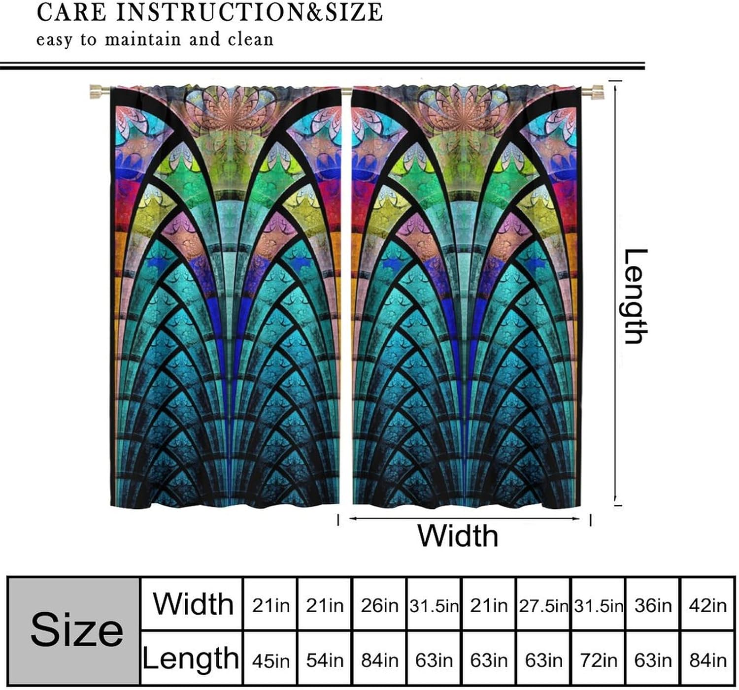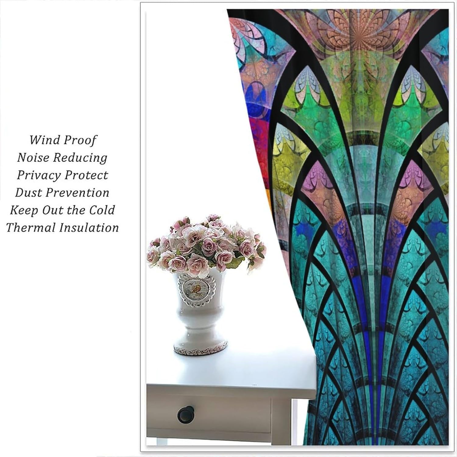 Stained Glass Curtains,Retro Design Style Colorful Abstract Art Home Decor Drapes for Bedroom Living Room Kitchen Window Treatment 2 Panels Set Total Size 42" W X 45" L Inch