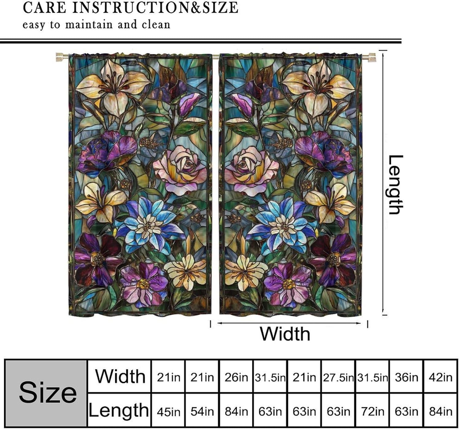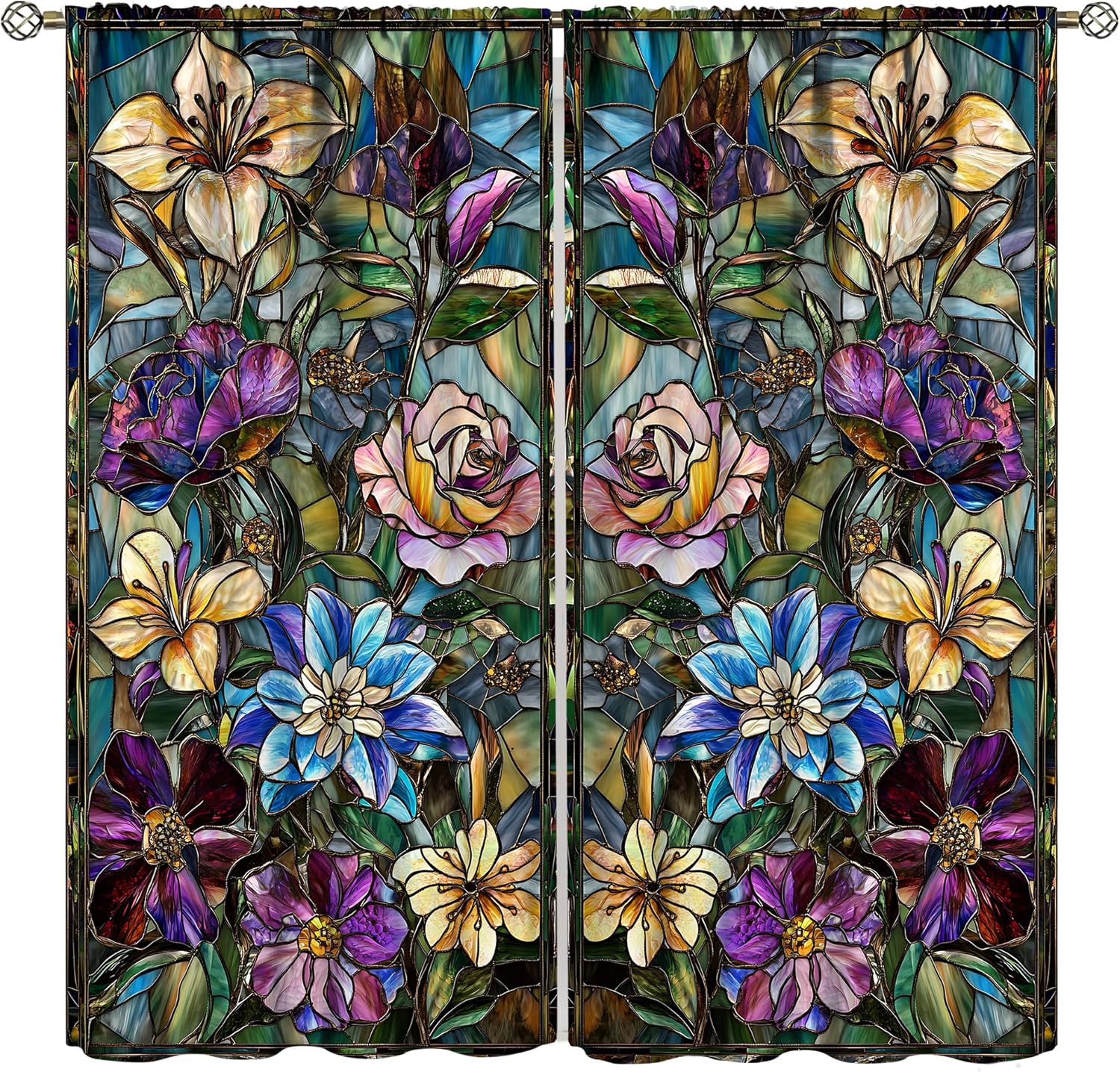 Stained Glass Curtains,Retro Colored Glass Flowers Art Home Decor Drapes for Bedroom Living Room Kitchen Window Treatment 2 Panels Set Total Size 42" W X 54" L Inch