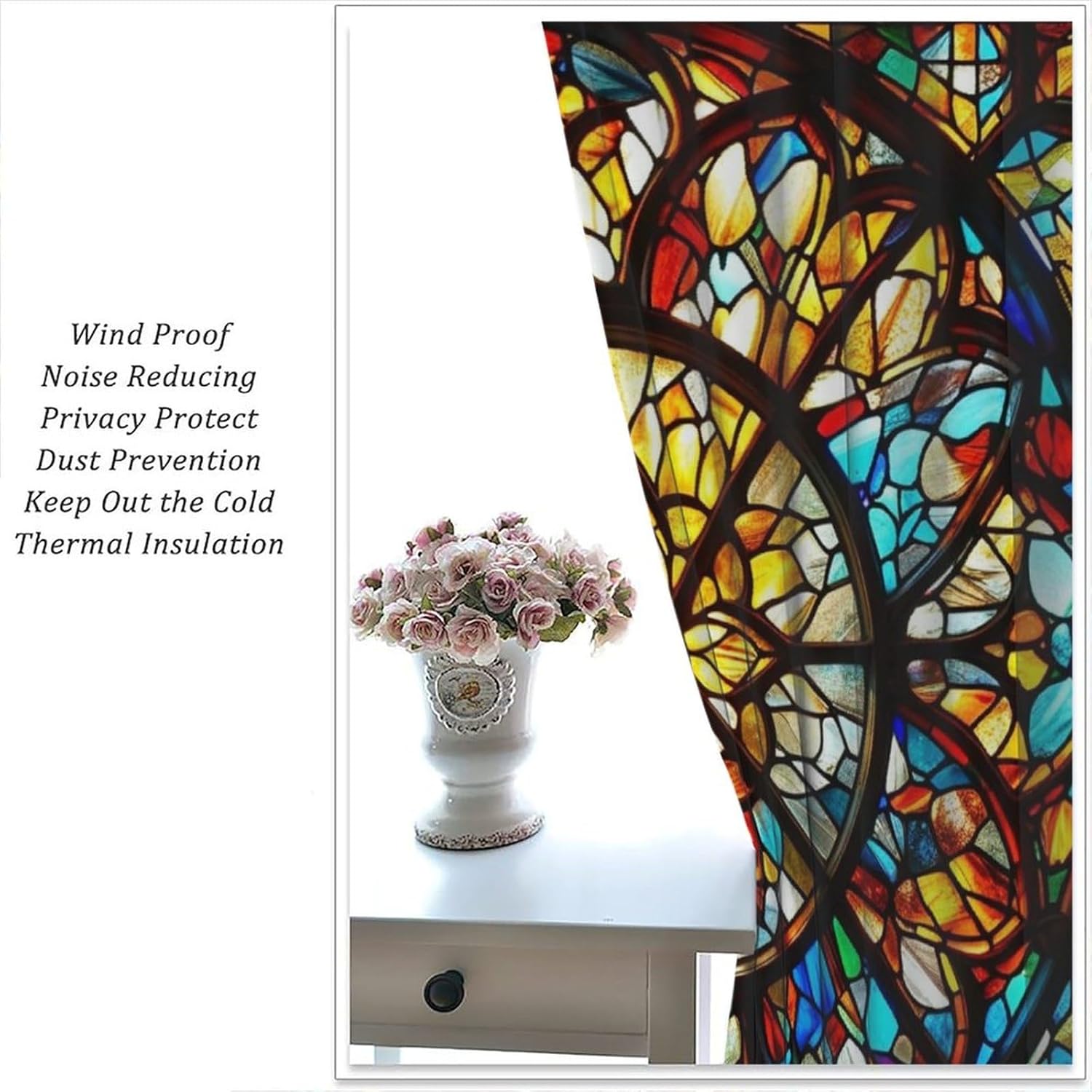 Stained Glass Curtains,Retro Mid Century Abstract Colorful Geometric Prints Home Decor Drapes for Bedroom Living Room Kitchen Window Treatment 2 Panels Set Total Size 72" W X 63" L Inch