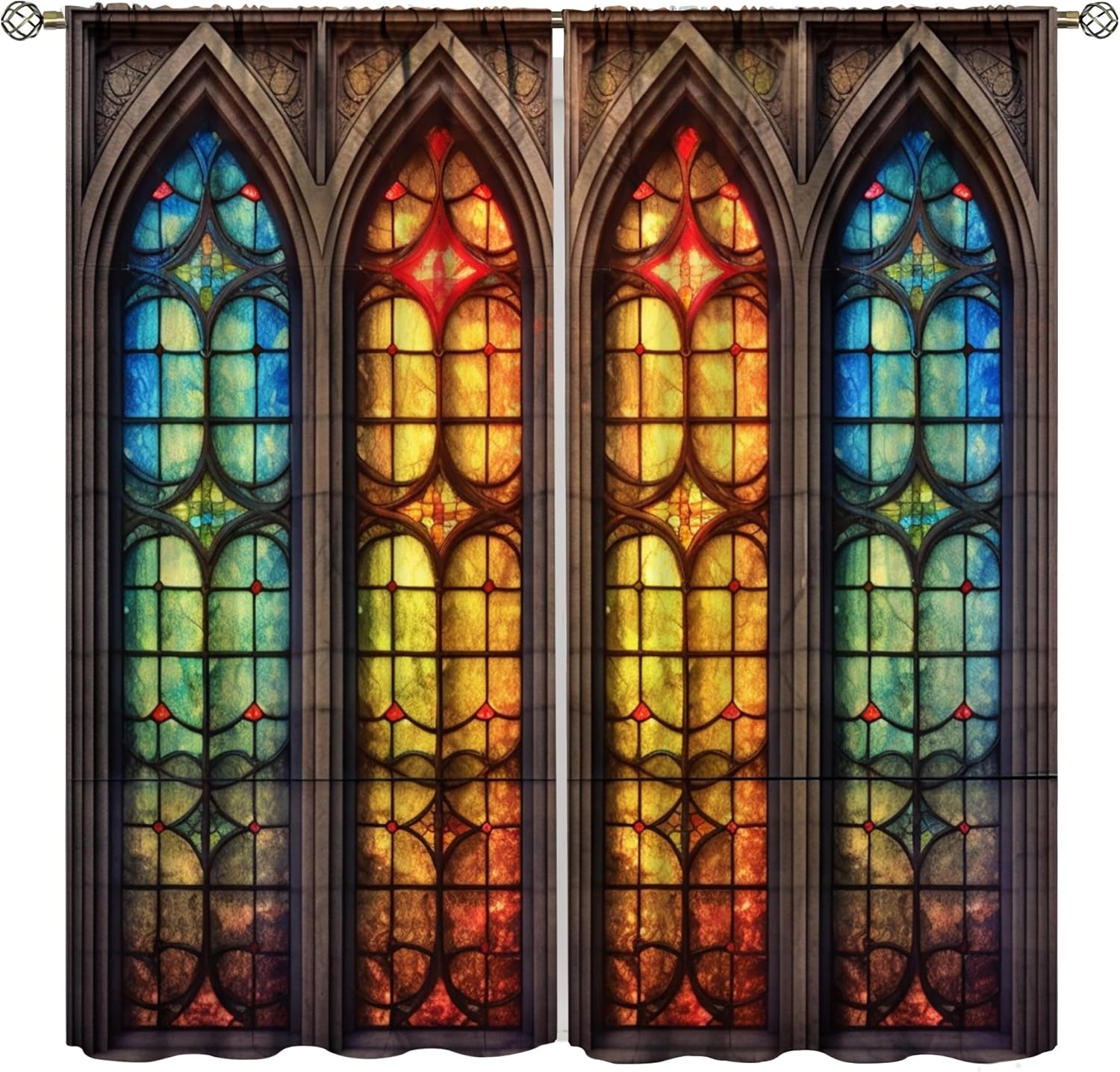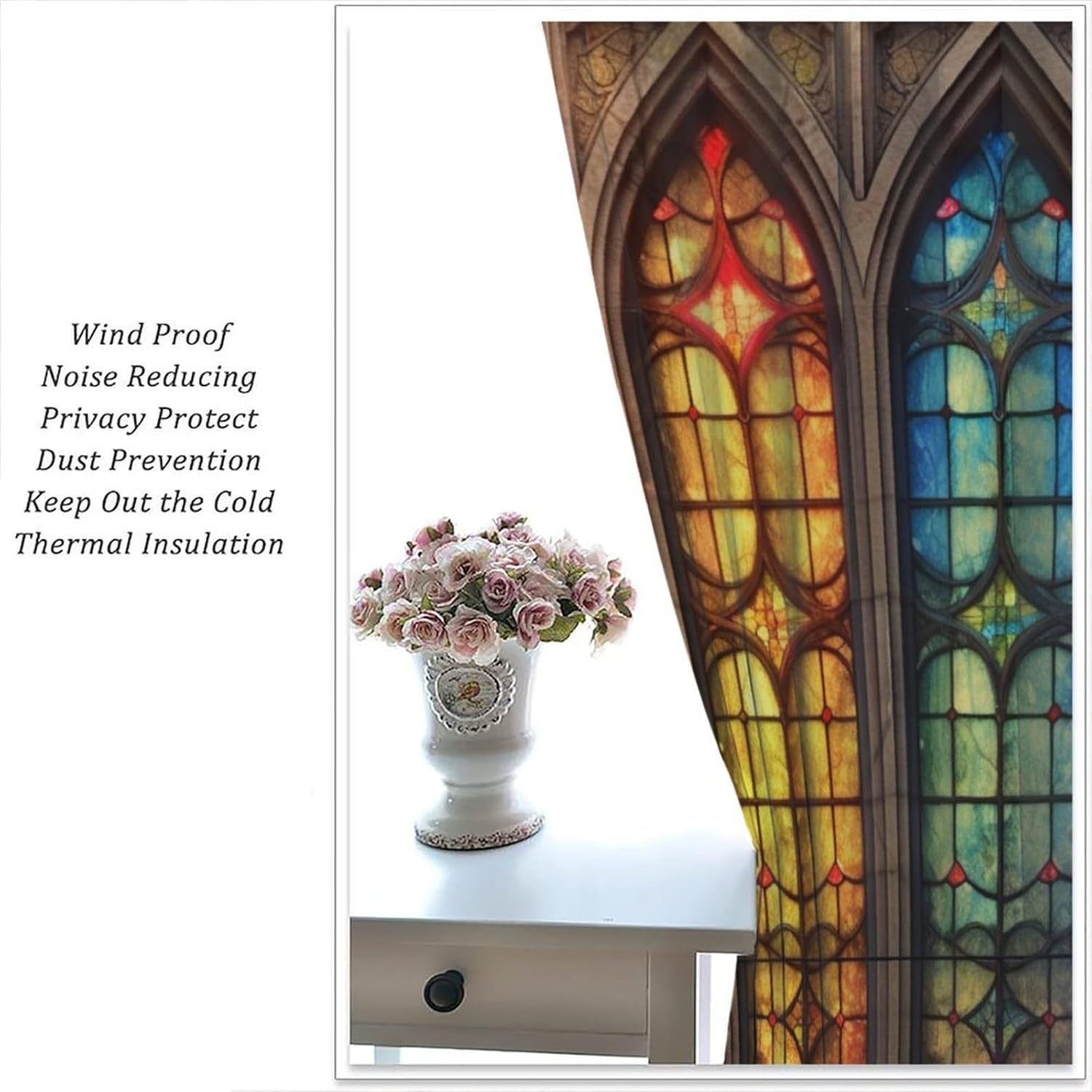 Stained Glass Curtains,Mid Century Vintage Style Abstract Art Home Decor Drapes for Bedroom Living Room Kitchen Window Treatment 2 Panels Set Total Size 63" W X 63" L Inch