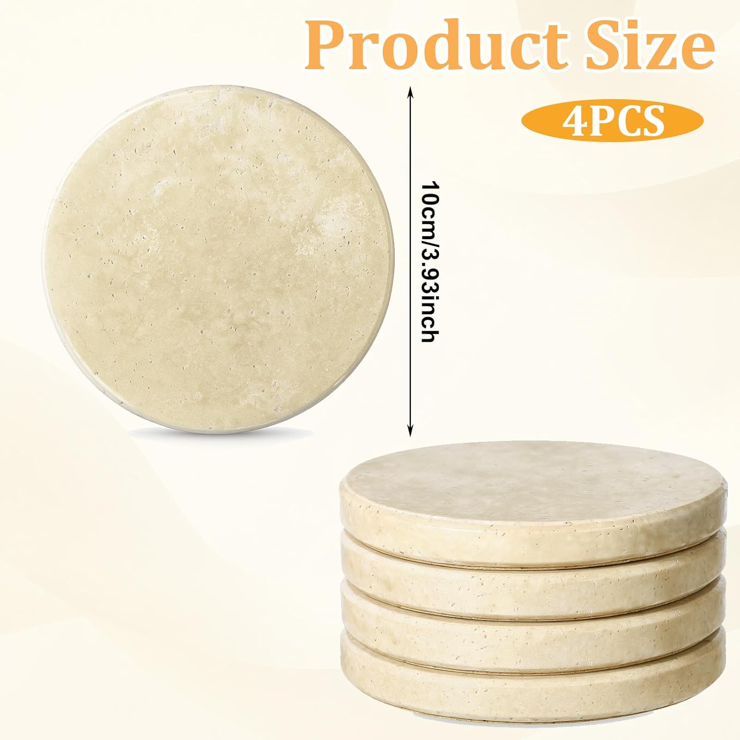 - 【Easy to Clean】Travertine stone is waterproof, the coasters could be washed by running water and wiped with a damp cloth. Each coaster measures 4 inches in diameter and 0.47 inches in thickness. The package includes a set of 4 round coasters, enough quantity can meet your daily use and replacement needs.