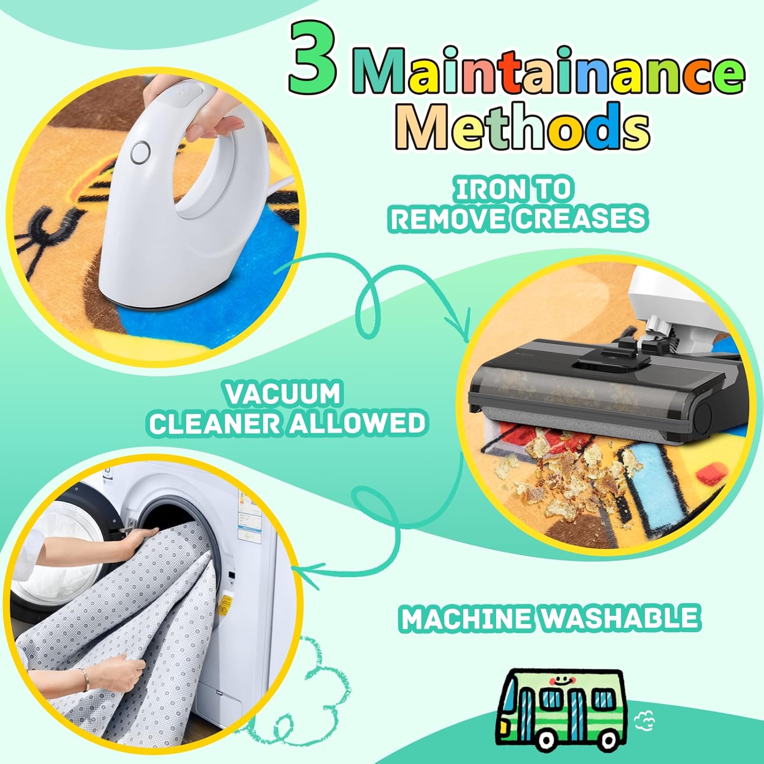 - [About Creases & Thickness]: Due to vacuum package, the road map rugs for kids may feel thinner and have wrinkles after right unpacking. Please don't worry, it will take 3 to 7 days for the kids rug to regain its original shape. You could also use a steam iron to smooth out creases caused by shipping folds.