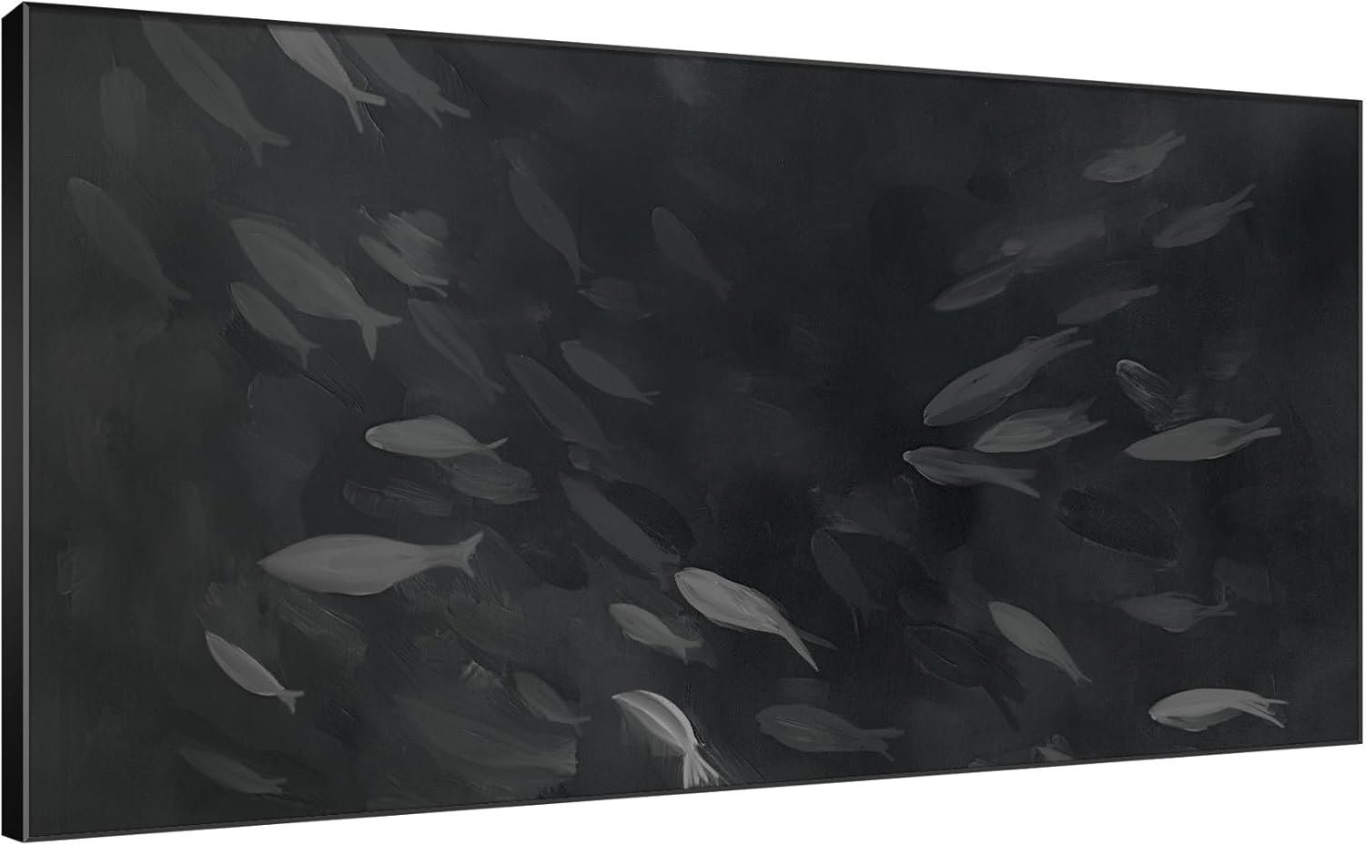 SIGNWIN 36"x72" Extra Large Framed Wall Art Monochrome Fish Silhouettes Illustration for Home Living Room Bedroom Decor (Frame Assembly Required)