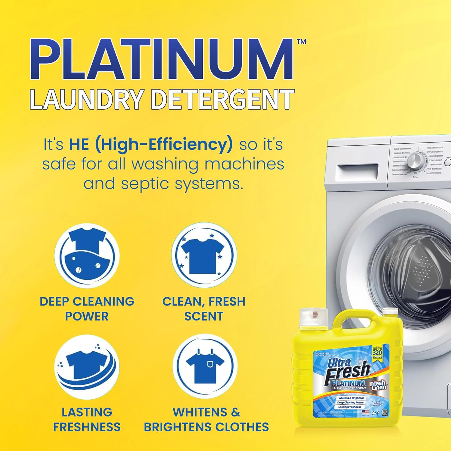 Ultra Fresh 2 Pack Platinum Liquid Laundry Detergent up to 320 Loads, Fresh Linen - Deep Cleaning Power and Fresh Scent for Washing Clothes