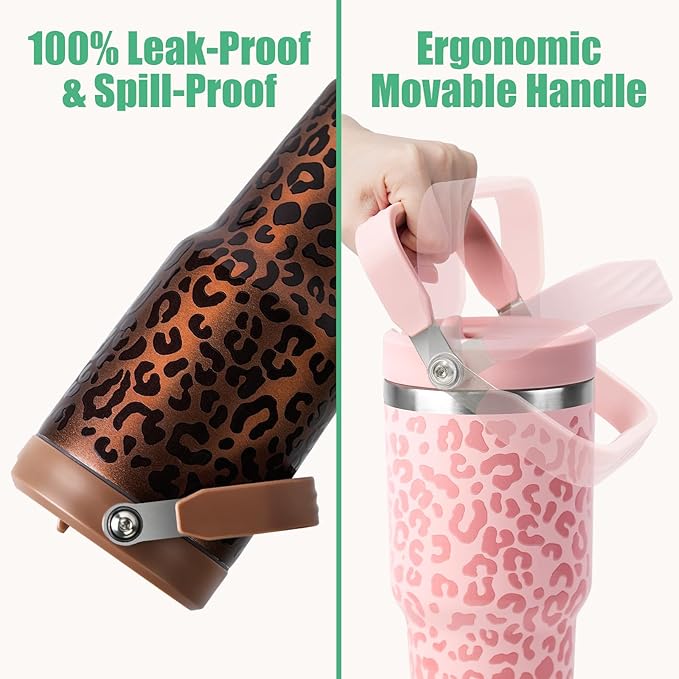 30 oz Tumbler with Handle, Vacuum Insulated Tumblers with Flip Straw and Top Handle, Reusable Insulated Cup for Home, Outdoors, Leakproof, Fits in Cup Holder, Cold for 30 Hours