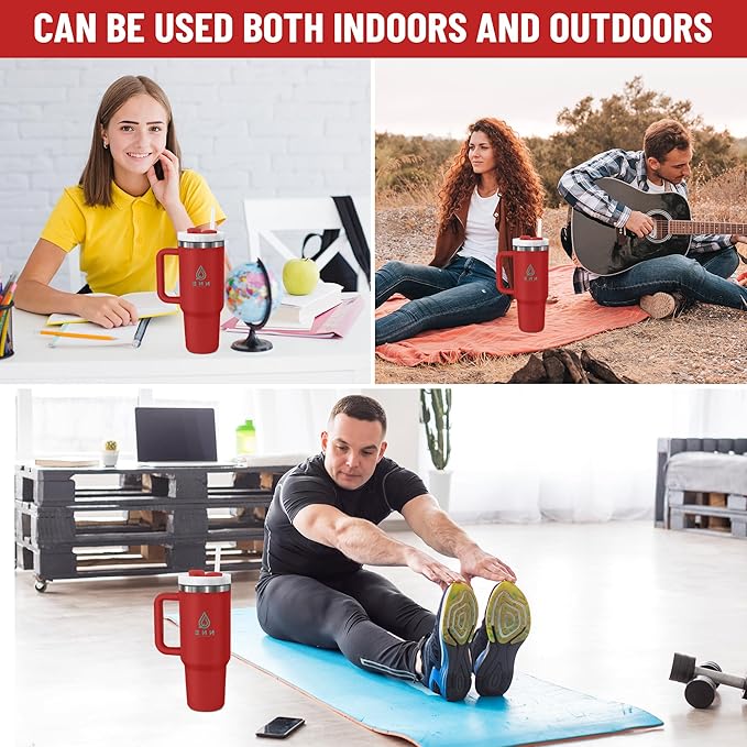 40oz stainless Steel Insulated Tumbler with Handle, lid and straw for cold water, Iced tea, or coffee - 100% Leak-Proof - Cupholder Friendly Travel Mug- Gifts for Women Men Him Her (Red)