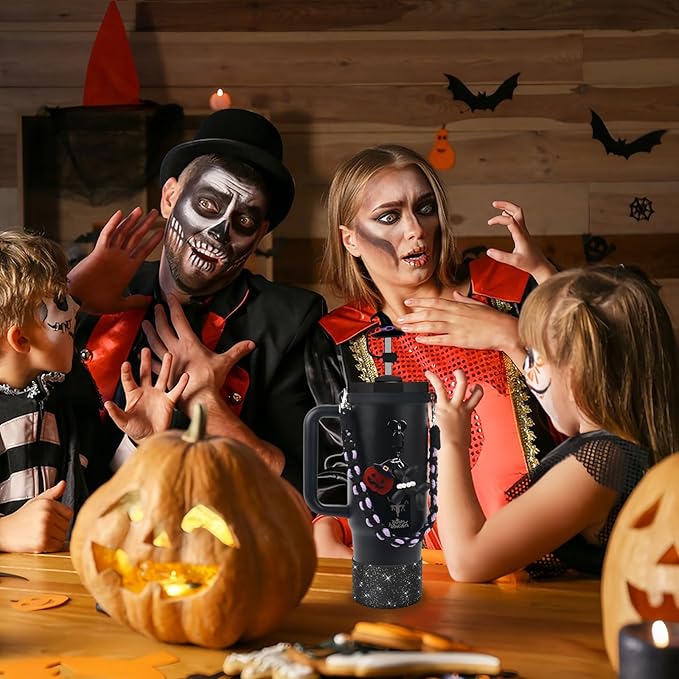 BELSITA Stanley Cup Accessories Set, Black Dog Chain Braided Design Water Bottle Handle Strap, Black Glitter Silicone Stanley Cup Boot, Stanley Charms for Stanley Cup 30/40oz Tumble(Halloween 1)